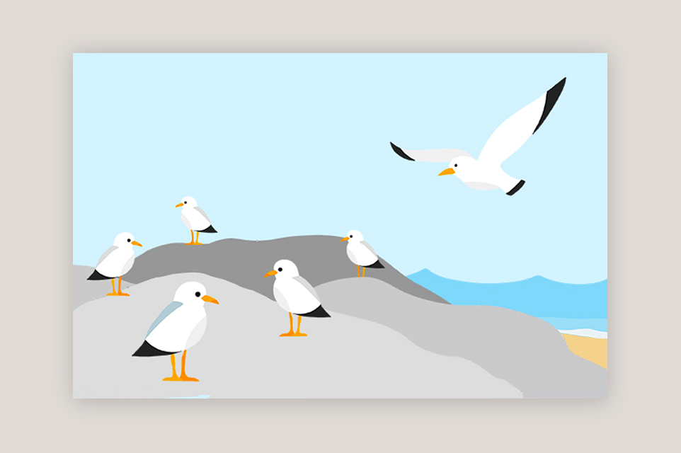 Le altre sono illustrazioni che ho realizzato per un progetto personale ispirandomi a una storia di un gabbiano e ai colori del mare.