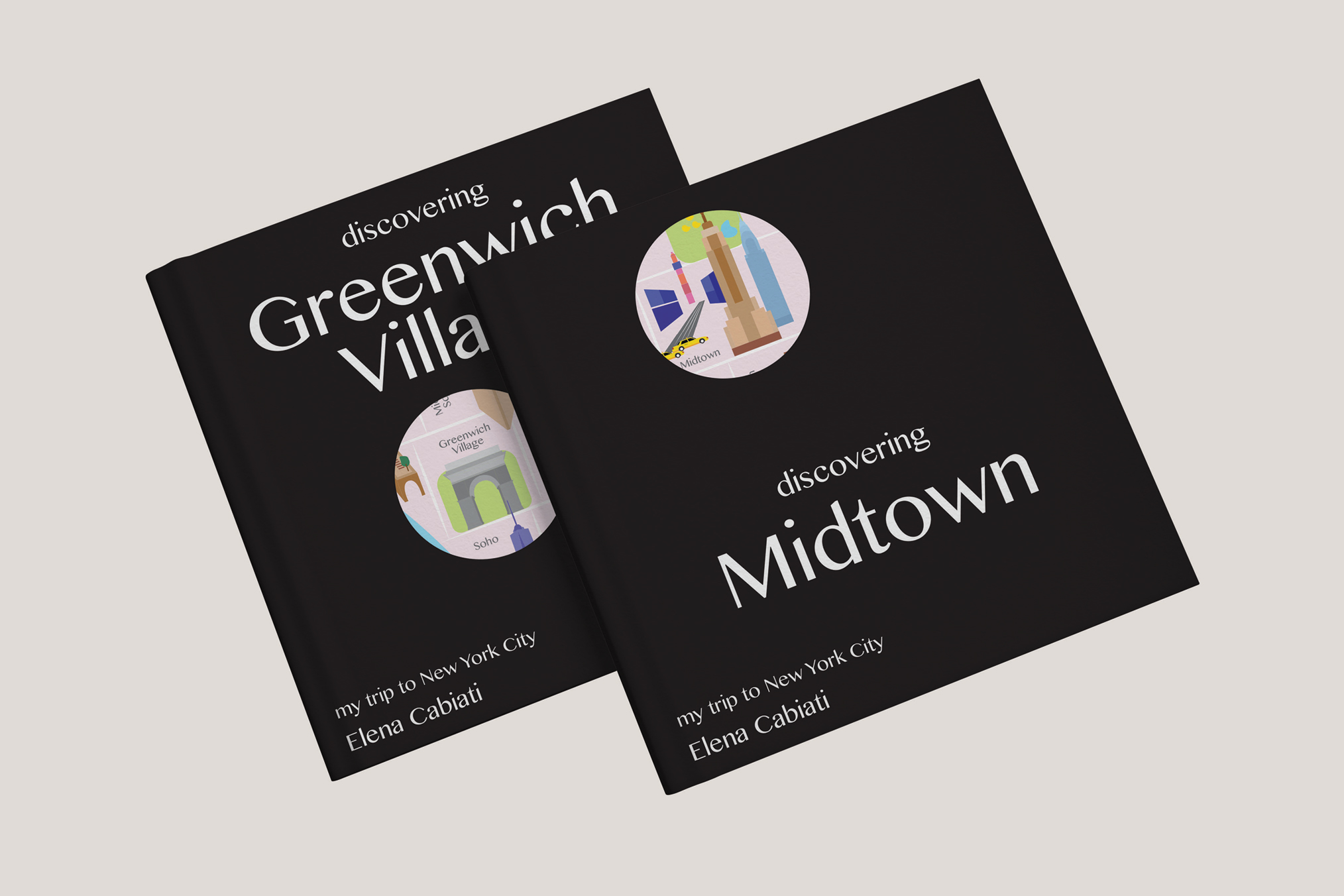 Ispirandomi ad un mio viaggio a New York, ho creato quattro libretti, ciascuno dedicato ad un quartiere di Manhattan. L’obiettivo del progetto è quello di raccontare i quartieri attraverso gli elemanti del colore, della tipografia e della texture che secondo me più li rappresentano. Ciascun elemento è presentato e rielaborato su una doppia pagina, quest’ultima è forata e fa intravedere l’immagine fotografica della parte della città alla quale mi sono ispirata.